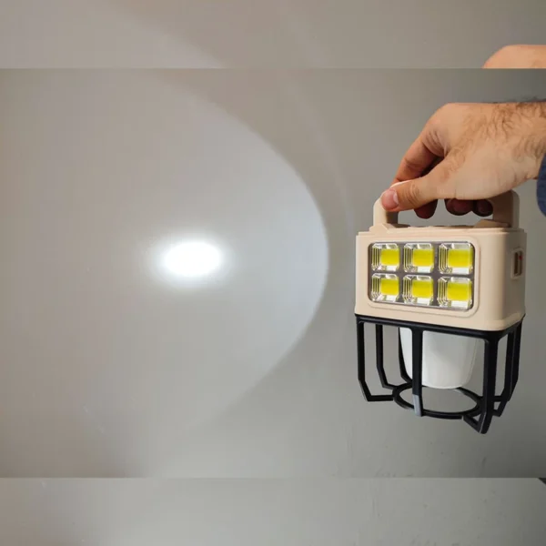 در بخش کناری، 6 عدد چراغ COB تعبیه شده است که نور مهتابی یکنواختی را ارائه میدهند. این ویژگی برای روشنایی محیطی گستردهتر مانند کمپینگ یا فضاهای باز بسیار کاربردی است.