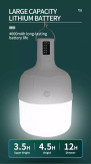 این لامپ شارژی آویزی به یک باتری داخلی لیتیومیون ۱۸۶۵۰ با ظرفیت بالای 4000 میلی آمپر ساعت مجهز است که قابلیت شارژ سریع از طریق پورت Micro USB را دارد. مدت زمان شارژ کامل حدود ۴ ساعت است و بسته به شدت نور، بین ۳ تا ۸ ساعت شارژدهی مداوم ارائه میدهد.